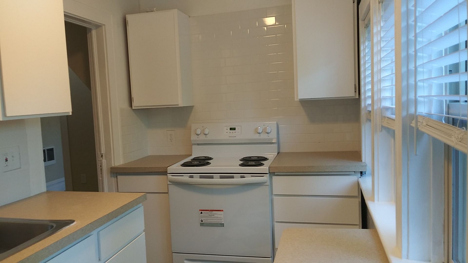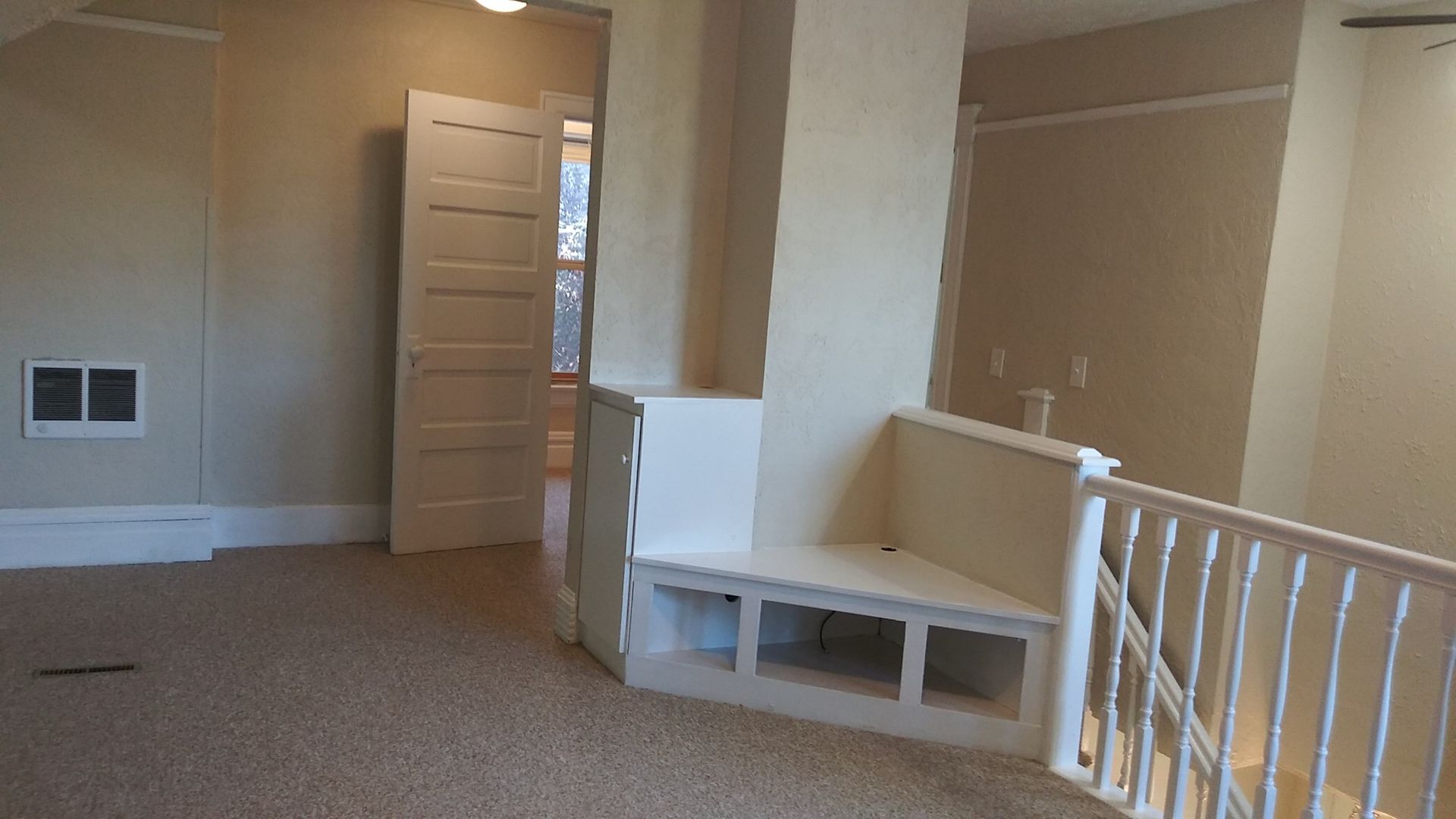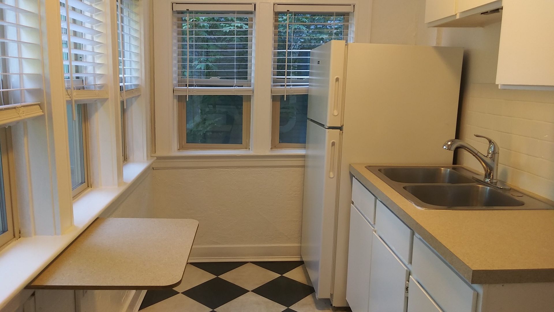 Inside you will find newer carpet and a fresh coat of paint. The living room windows have a peek through view of the city, and a closet with a surprise storage nook. The first bedroom is near the living room and gets lots of light with the big windows. There is a bonus room between the bedroom and living room with a built in desk. Down the hall there is a little nook (reading corner, dining area...you decide) before you get into the kitchen. The kitchen features updated newer counter tops and a subway tile backsplash, a newer refrigerator, and a newer stove too. The bathroom has the original honey comb pattern tile on the floor, and new subway tile in the shower. The second bedroom has windows that face west and south adding for excellent natural lighting all around.