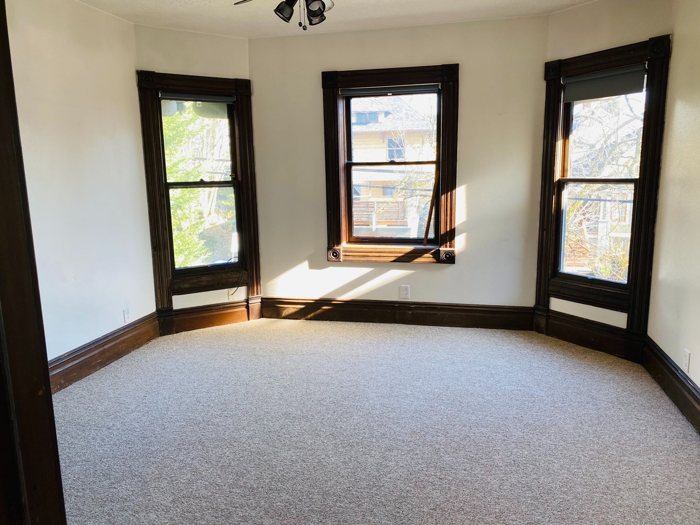 Enormous studio with all the charm of old Portland: dark wood doors, high ceilings, and chunky mouldings. The kitchen is large enough for full table, and there is a decent sized living or bedroom space with two huge closest. Plus, rent also includes an 800 SF unfinished attic for your exclusive use. Think of this as your man cave, she-shed it, cool artist style, or just awesome amounts of storage for all your gear.