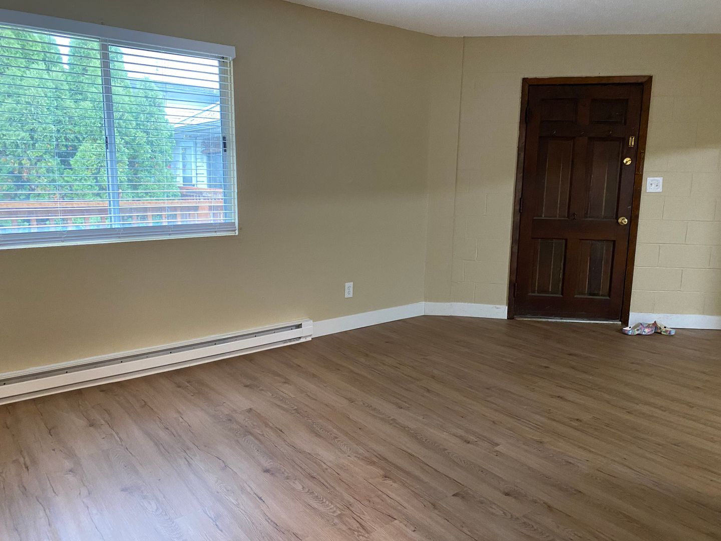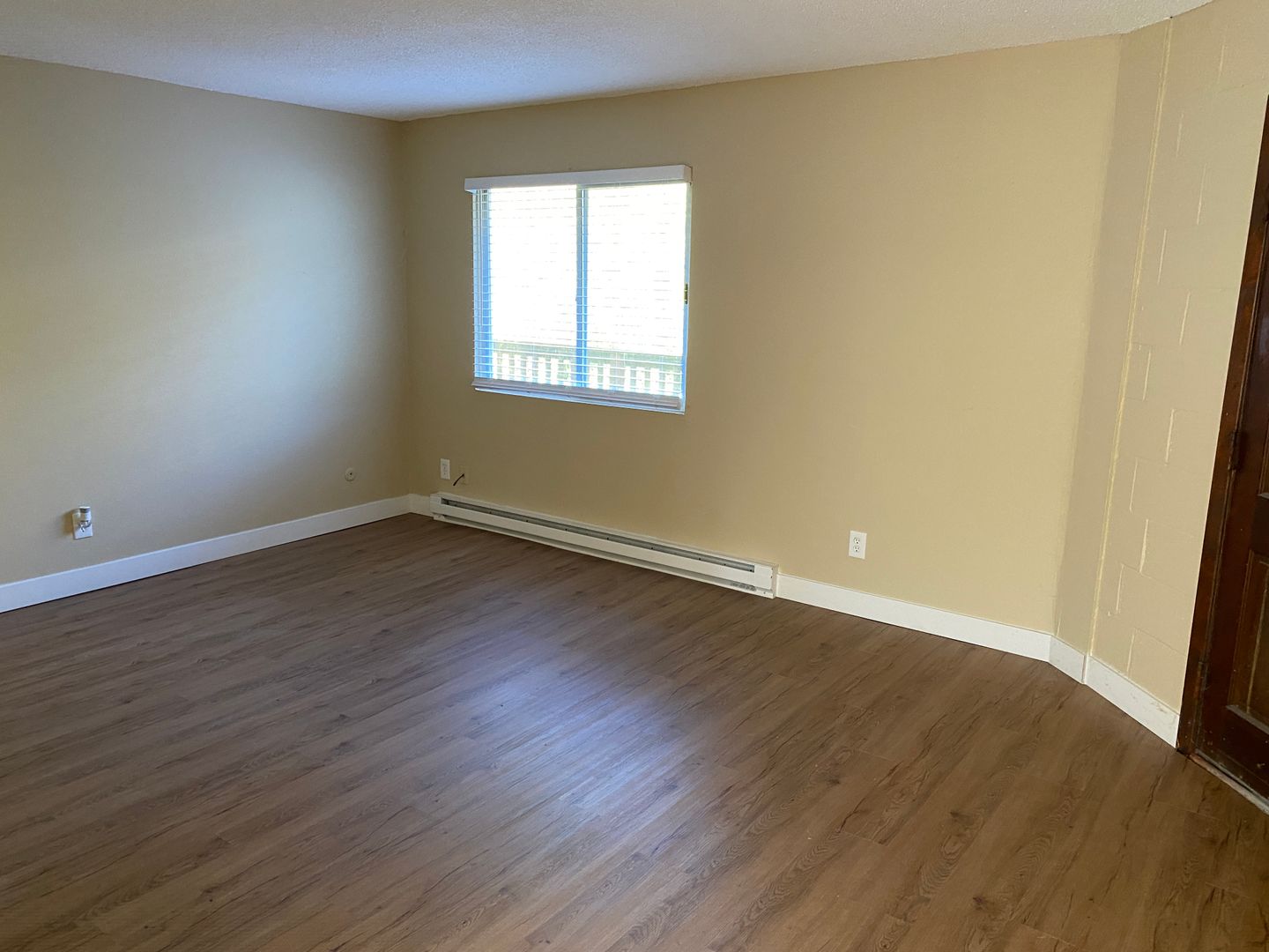 Simple and spacious 2 bedroom apartment. There is laminate wood look flooring in the spacious living room, and all new finishes throughout, new appliances in the kitchen too.