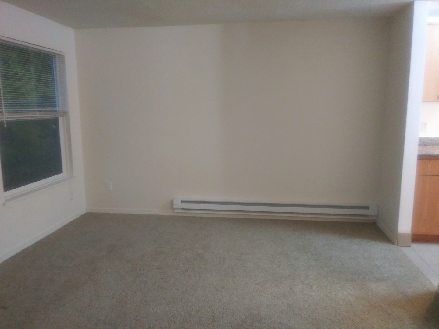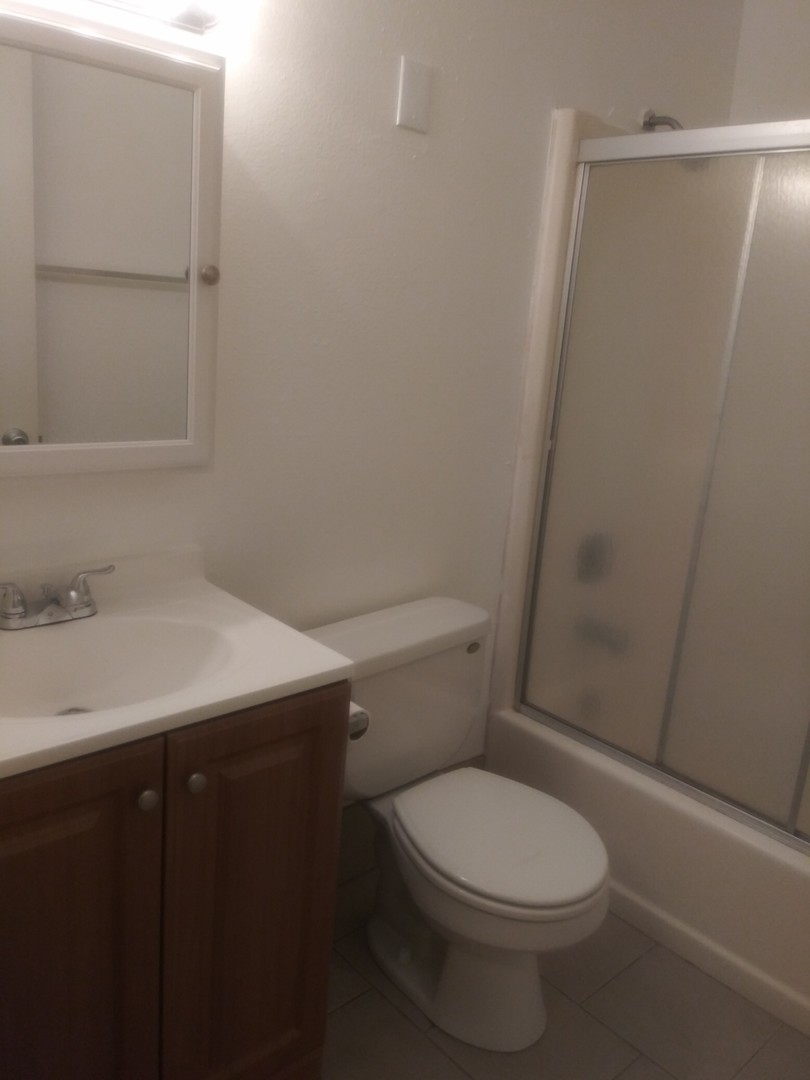 The apartment is nice and quiet, because it's tucked away off the street. We just finished updating it with new carpet and a fresh coat of paint. There is a large sliding glass door off the living/dining area that opens up to a patio with some green space. The galley style kitchen features a refrigerator, dishwasher, and electric stove. In the bathroom you will find a new vanity and medicine cabinet. The bedroom and closet are spacious.