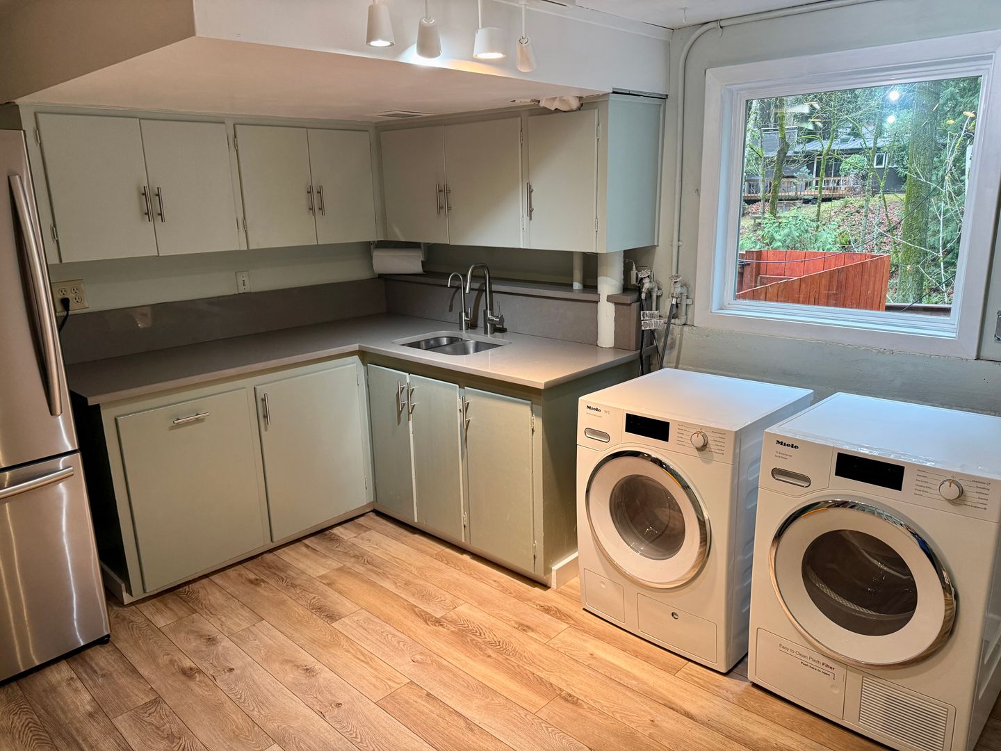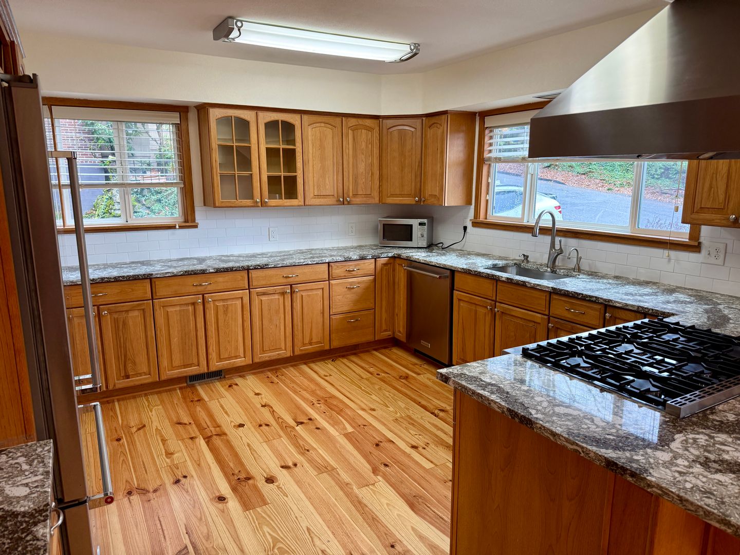 Tons of high end updates include a 6 burner gas stove, stainless appliances, beautifully handcrafted cabinets, and quartz counters. Wood flooring flows thru-out on the main level and southern exposures creates a zentopia of natural light everywhere. Down below, you will find the open concept daylight basement, that is grade level to the amazing pool, fern garden, firepit and the outbuilding-studio too.
