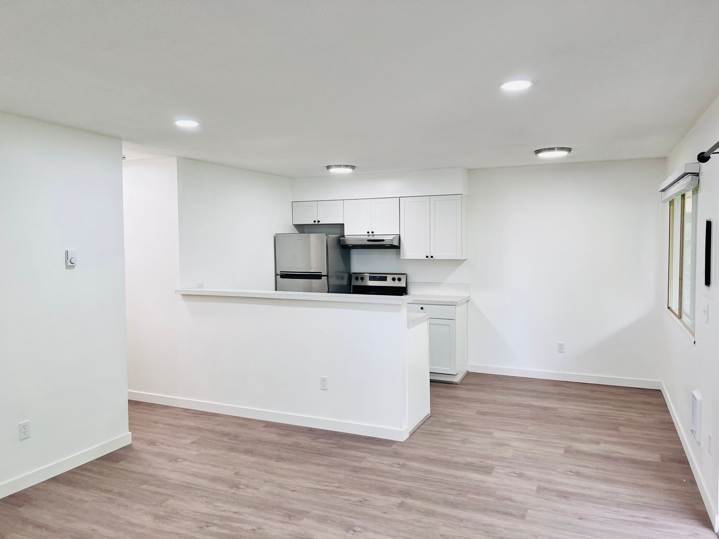 Beautifully updated modern flat with a totally private deck and peek a boo view of Fremont bridge and the city lights. Large living room, plenty of roof for a puffy couch and wall mounted TV. Complete renovation includes all new cabinets, flooring, lighting, and SS appliances.