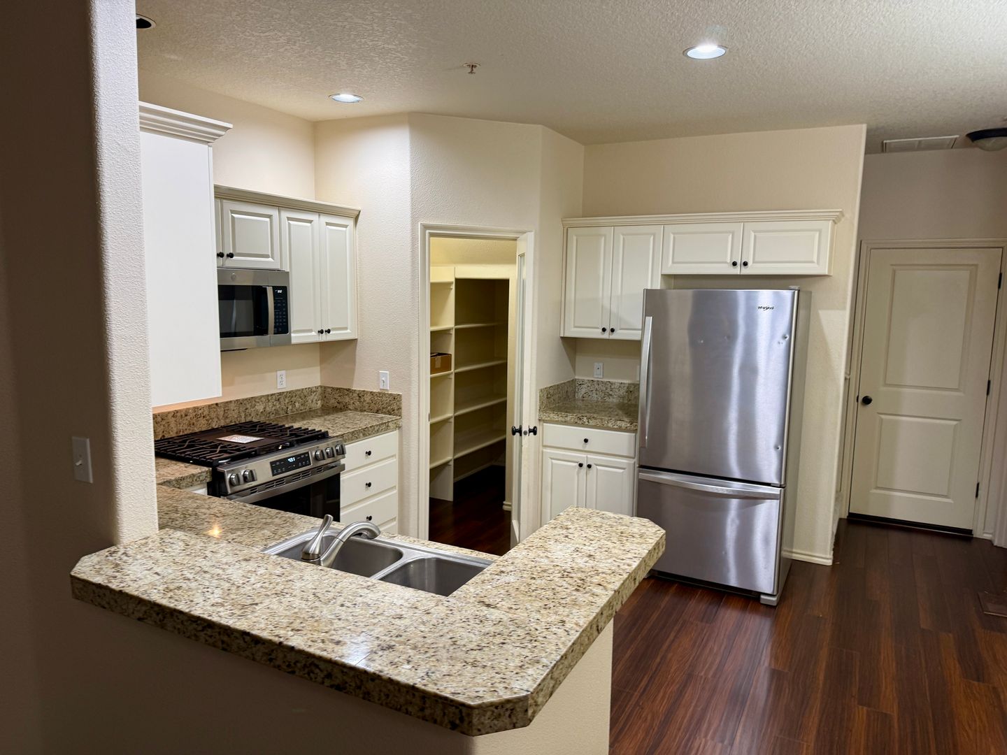 Finishes include all new paint, new carpet, new gas range and microhood too. The kitchen also features a nice sized walk-in pantry with tuck around storage too. Upstairs thru the vaulted ceiling loft you will find two generously sized bedrooms. The primary bedroom is on-suite and includes a soaking tub and stand up shower, plus oversized walk in closet, for all your storage needs.